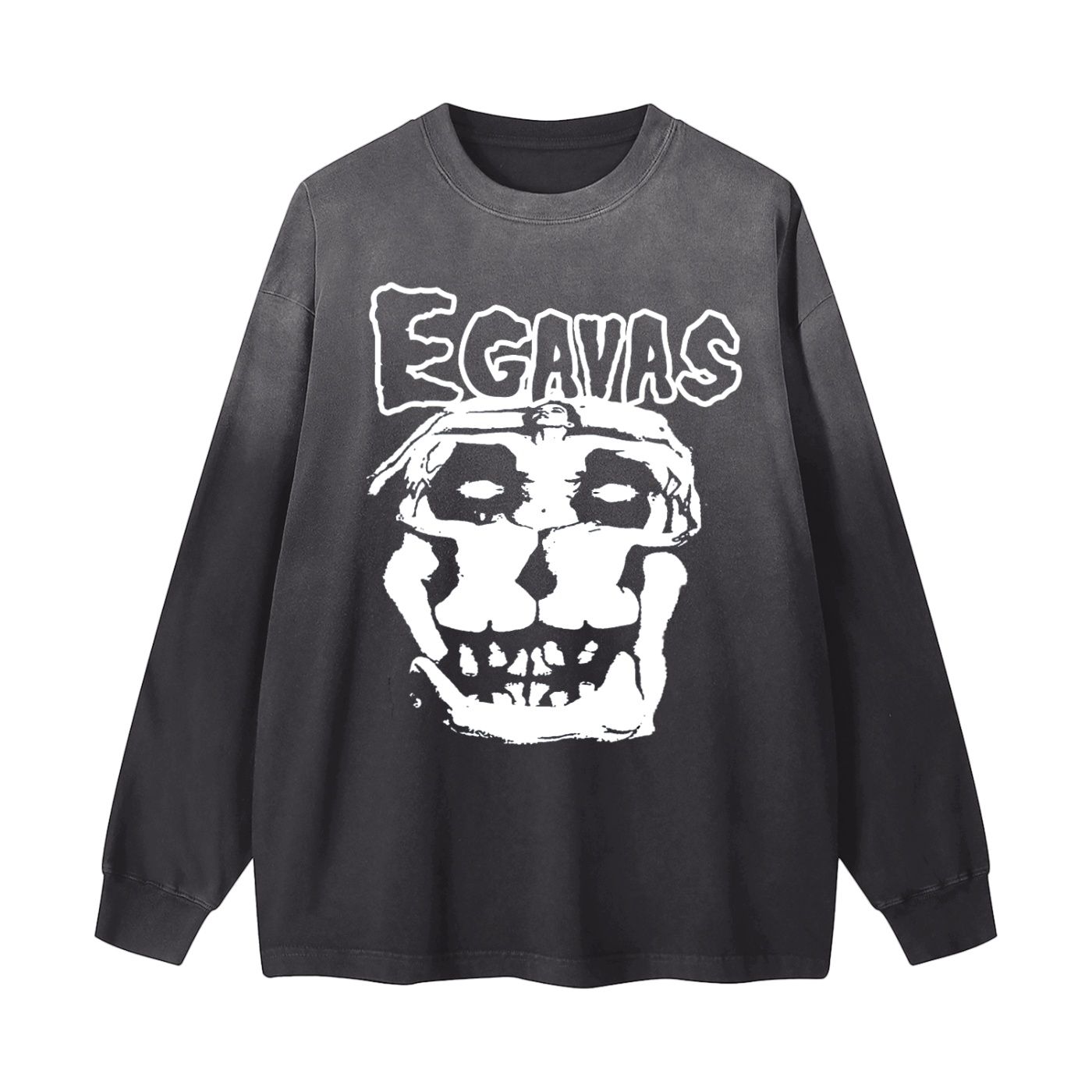 Be the first to review “Egavas Mosh pit Logo Gradient Vintage Washed Long Sleeve Tee – 270 GSM”